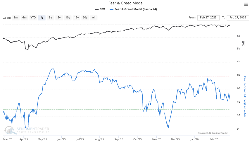 The Fear and Greed Model is still chopping in the middle of the range, displaying indecisiveness.