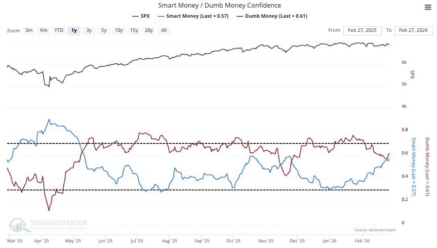 The biggest reason why dips should get bought is because Smart Money has been buying on every dip recently. Dumb Money just started to buy once again as well.