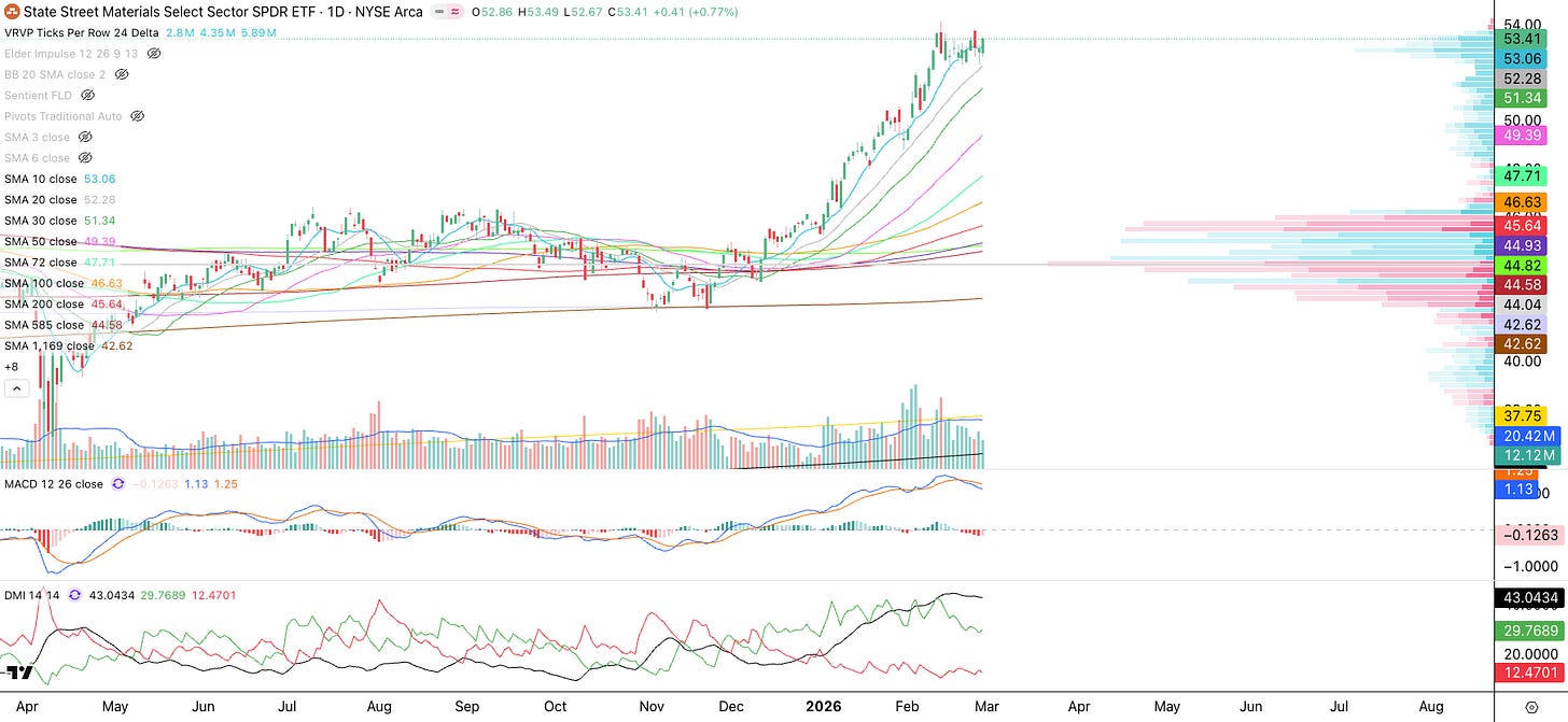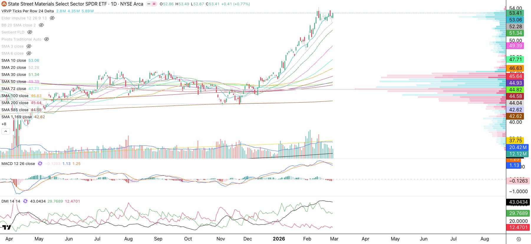 Materials (XLB): This is a similar look to XLE. Also notice how Wall Street accumulated XLB around the POC at $44 and is now in significant profits.