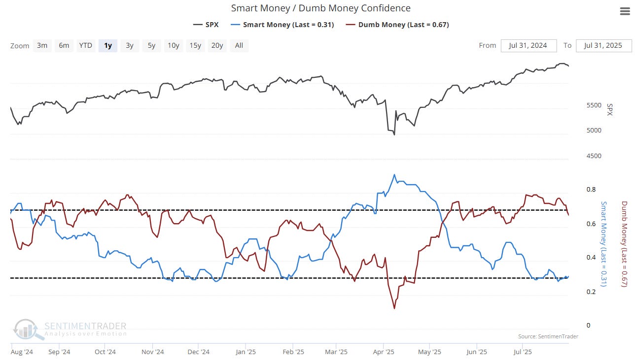 Dumb Money appears tapped out as Smart Money is at a low, ready to buy the upcoming dip.