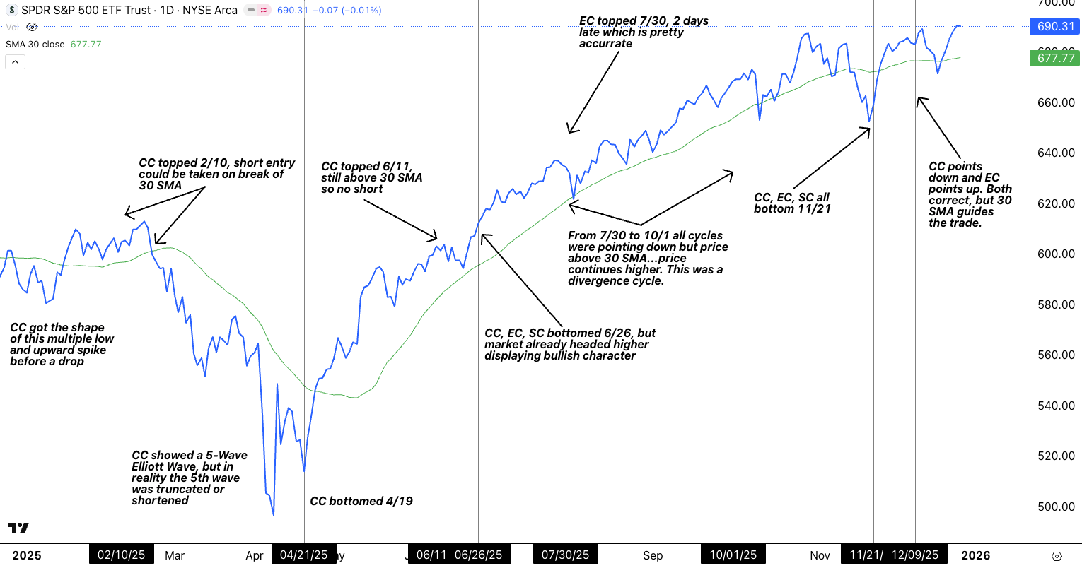 In 2025, our Cycle Forecasts have proven to be an excellent tool, especially when combined with a moving average. The cycles consistently identified when turning points and opportunity windows were opening, while the 30-SMA determined whether those signals were actionable.