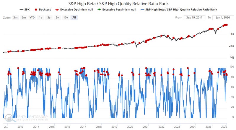 The first indicator to highlight is the S&P High Beta / S&P High Quality Relative Ratio Rank indicator.