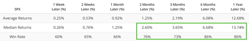 The table below summarizes the subsequent performance of the S&P 500.
