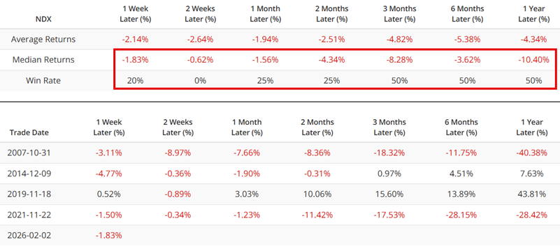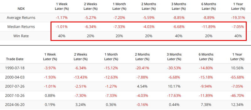 The table below summarizes subsequent Nasdaq 100 Index performance.