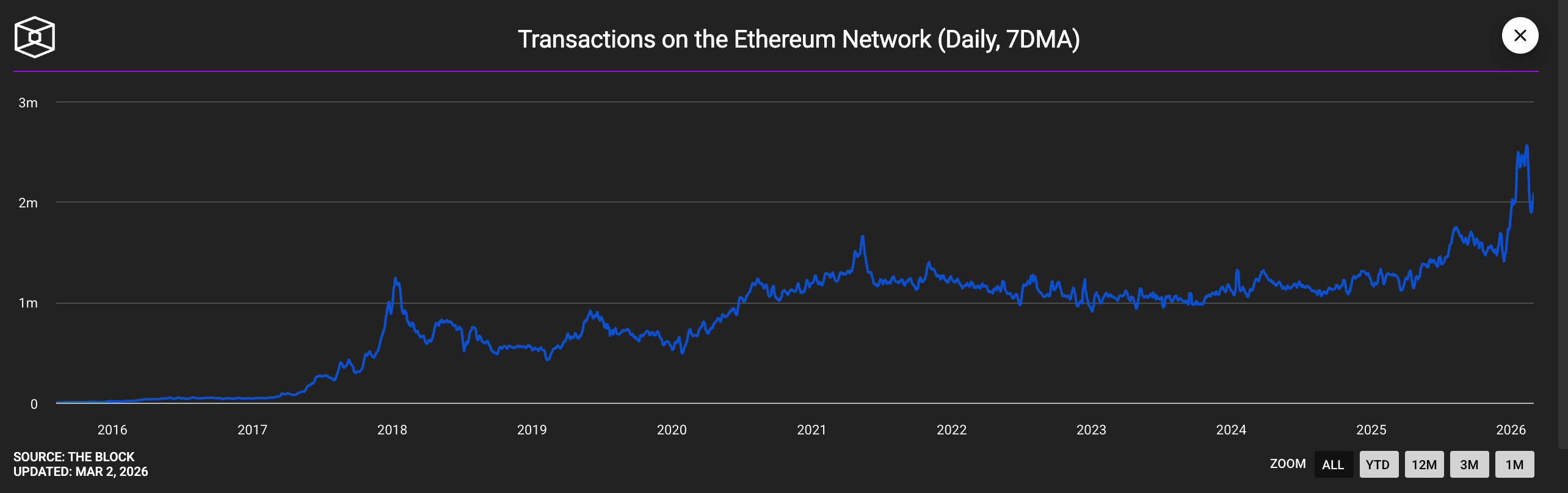 Even from a fundamental standpoint, the activity on Ethereum is still at levels higher unseen between 2015 to 2025.