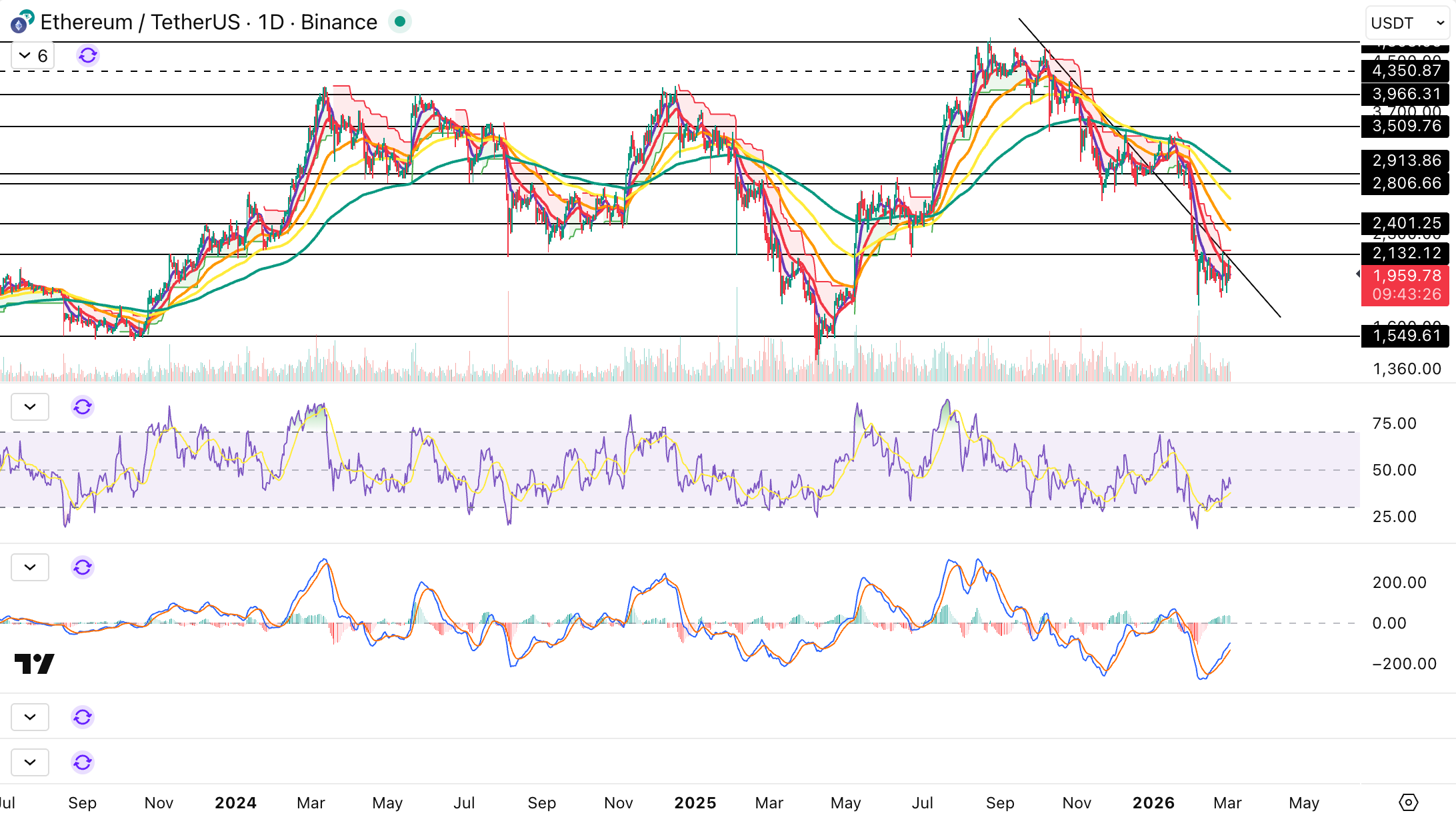 Reclaiming $2,130 would put $2,400k in play (and potentially even $2,800), whereas, rejecting from $2,130 could put $1,550 on the table (very likely forming a bullish RSI divergence).