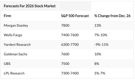 Here are the 2026 price targets for the S&P 500 from the top Wall Street firms: