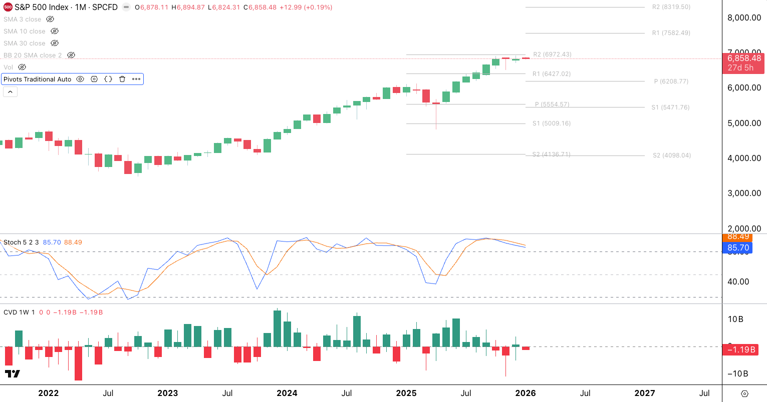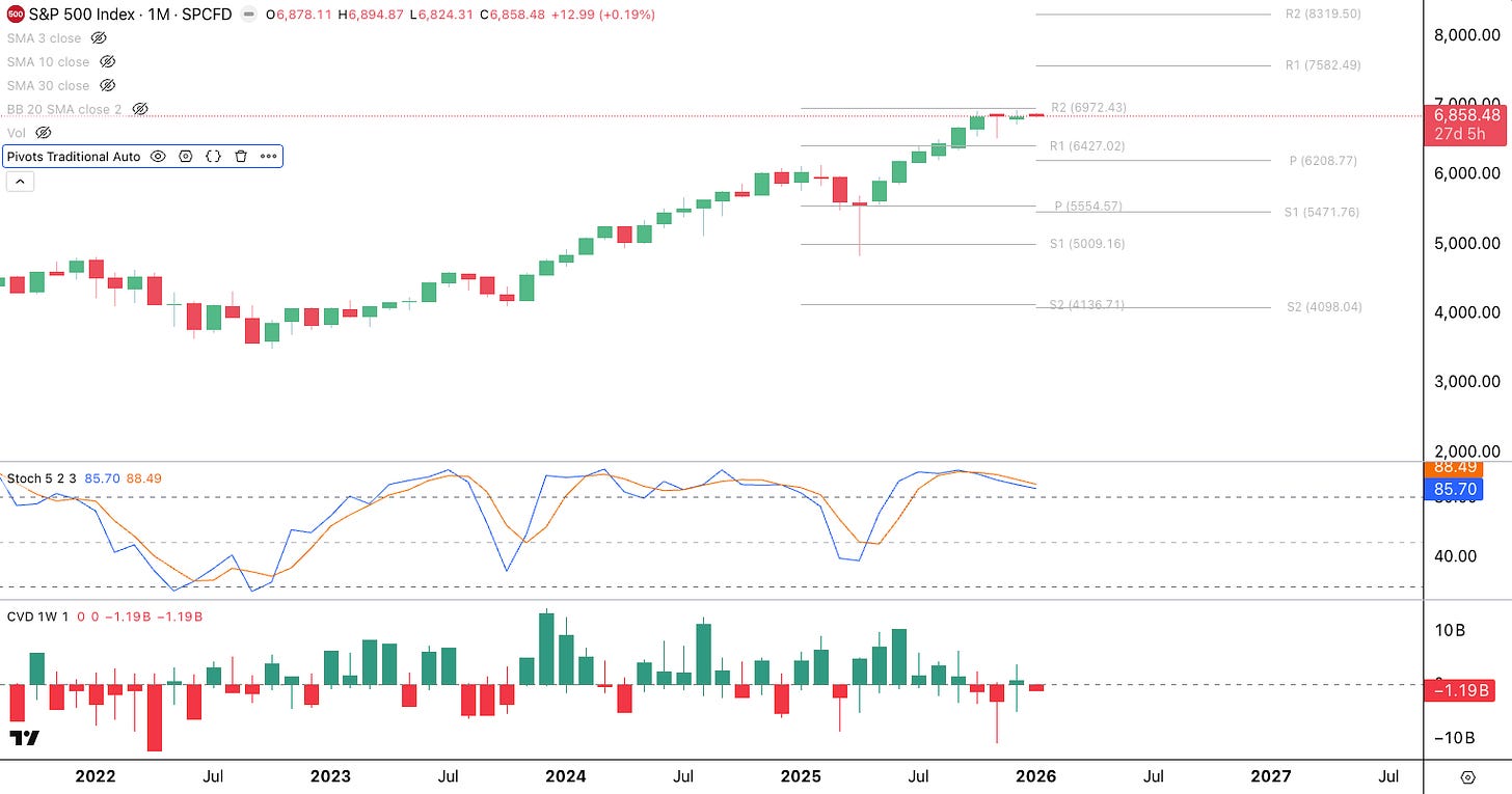 Yearly pivot points on the monthly chart often act like a magnet for major turning points. In 2025, the April correction touched the S1 Pivot Point and then reversed, ending the year grinding against the R2 Pivot Point. If a correction in 2026 were to reach the S1 Pivot Point, that would imply a roughly 20% decline to the $5,474 level, which would be entirely normal. A move down to the S2 Pivot Point at $4,098 would represent a 40% correction. On the upside, a rally from the S1 Pivot Point to the R1 Pivot Point would equate to a 38% advance, while a move to the R2 Pivot Point would imply a 52% rally.